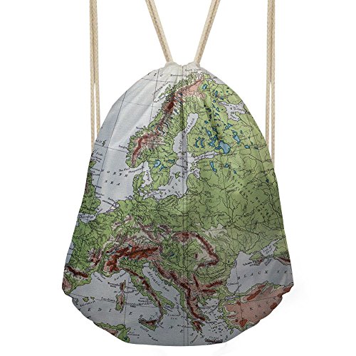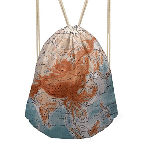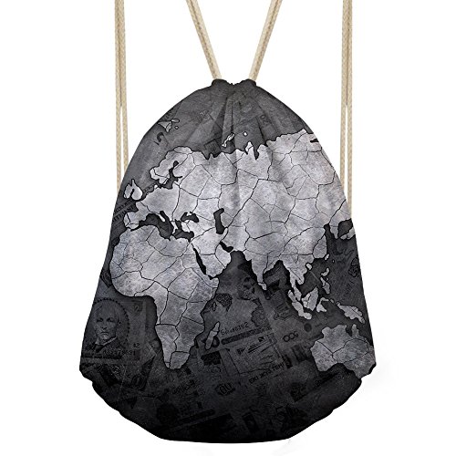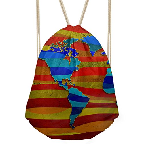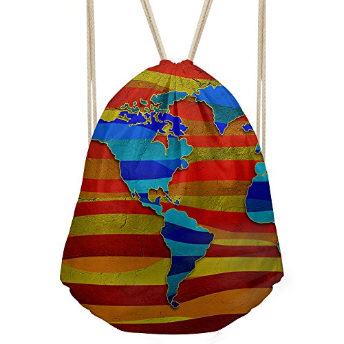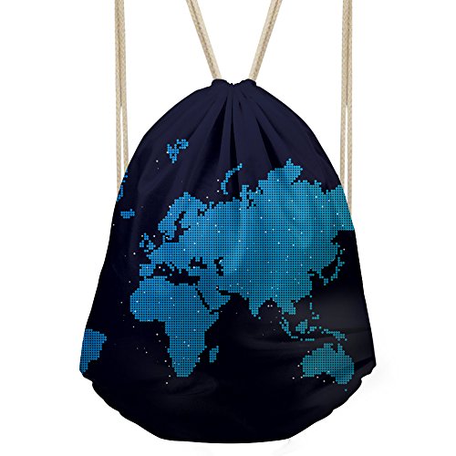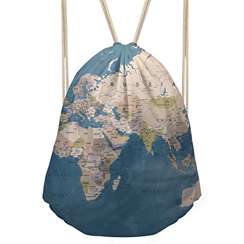 | Personalized World Map Printed Drawstring Bag Lightweight Sports Gym Sackpack |