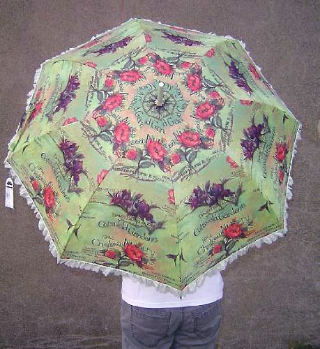 Studio : Manual woodworkers and weavers Publisher : Manual woodworkers and weavers Binding : Kitchen Product Description Isabella's Parasol is a high quality water resistant fabric umbrella. Use this English Garden parasol to protect you from the sun and the rain. 40" in diameter when the umbrella is openned. Sturdy durable construction. Charming feminine styling. 0