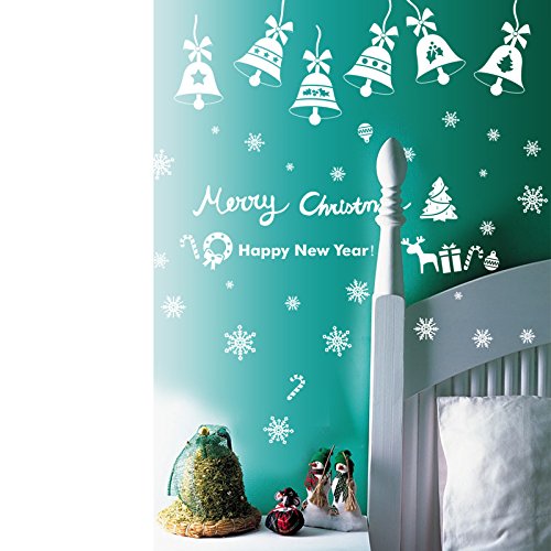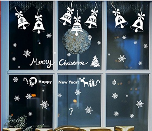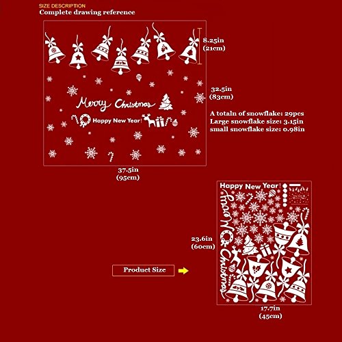 Christmas Bells Window Clings Christmas Window Decorations, 14pcs Bells, 58pcs snowflake, Christmas New Year Decorations Xmas Ornaments (2 sheet)