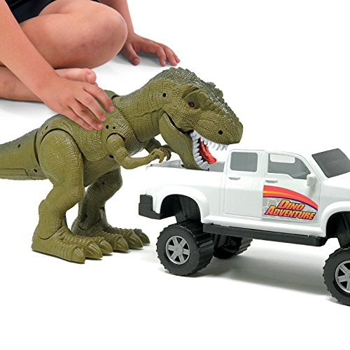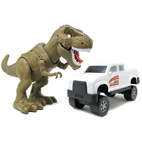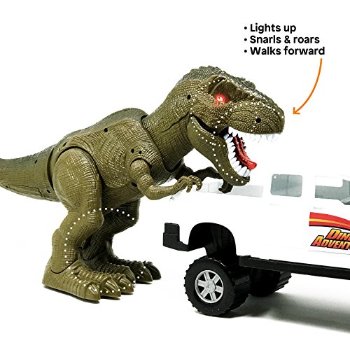 WHATS INSIDE: T-rex and toy car set includes a tyrannosaurus toy and a large toy truck perfect for Jurassic Park play
