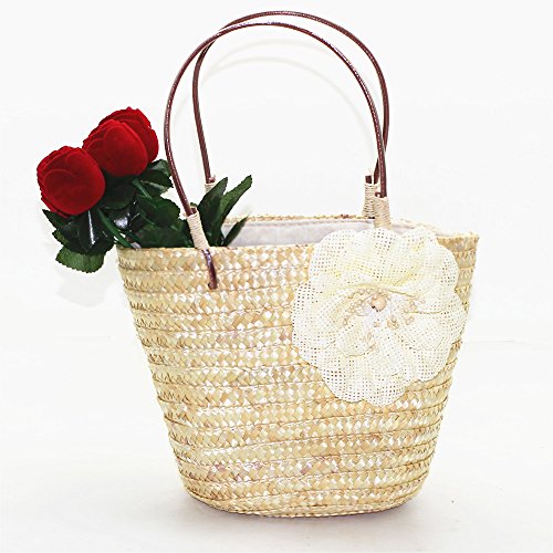 TANG SONG Cute Handmade Summer Beach Sea Shoulder Bag Handbag With Drawstring(Flower Not lnclude)