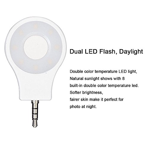Efanr® Portable Mini 8 LED Dimmable Selfie Light Cellphone Camera Flash Fill-in Light Pocket Spotlight Photo Video Light Lamp for iPhone Samsung HTC Nokia iPad Other Smartphones Tablets (White)