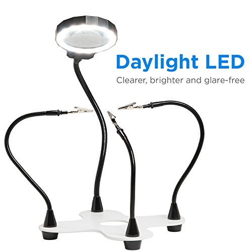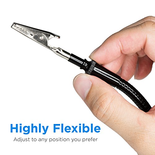 - ✔ Maximum Adjustability - Four flexible metal gooseneck arms with stainless steel alligator clips adjust to any position with the ability to securely clamp objects large and small