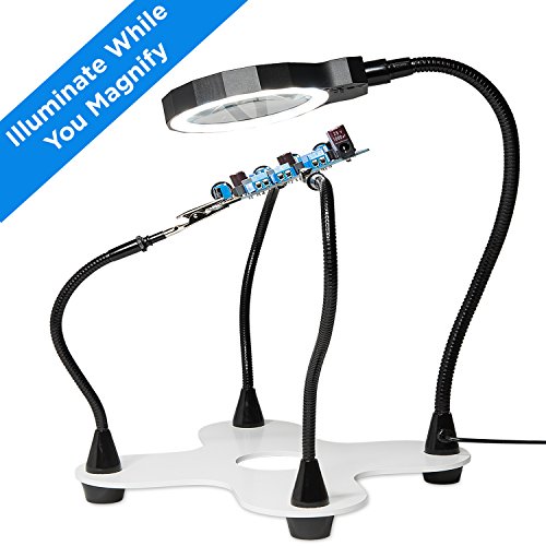 Fancii LED Helping Hands Soldering Magnifier Station, Third Hand with Daylight LED 2X Magnifying Lamp, 3 Adjustable Light Settings, 5 Flexible Arms and Heavy Duty Base for Hobby, Jewelry & Repair