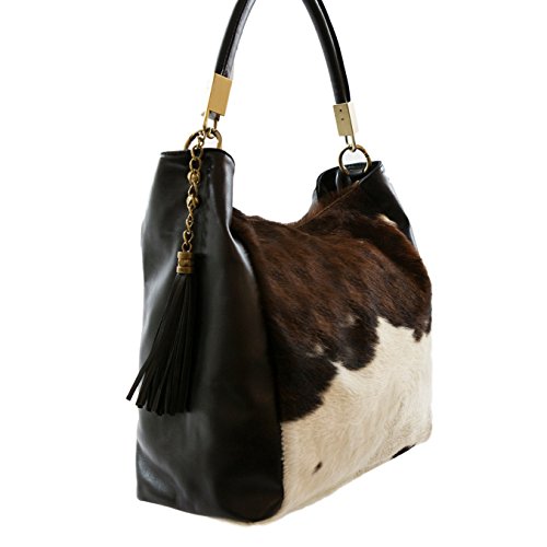 NOVARA Shoulder Bag Exclusive Italian Leather/Pony Hide Carelli Italia, with Cow Print TWEE