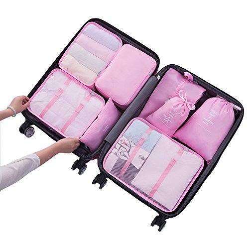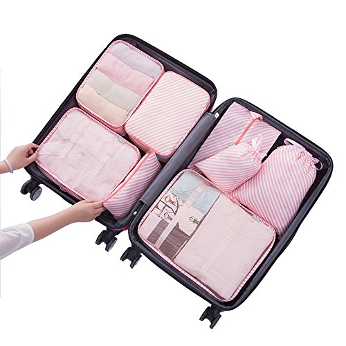 8 pieces packing cubes are multifunctional to keep your luggage tidy and clean, suitable for family/couple or long-term travel.