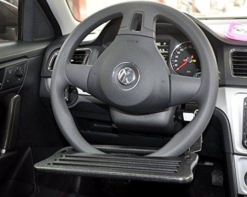 Hook on your steering wheel, you will get an instant ergonomic desk.