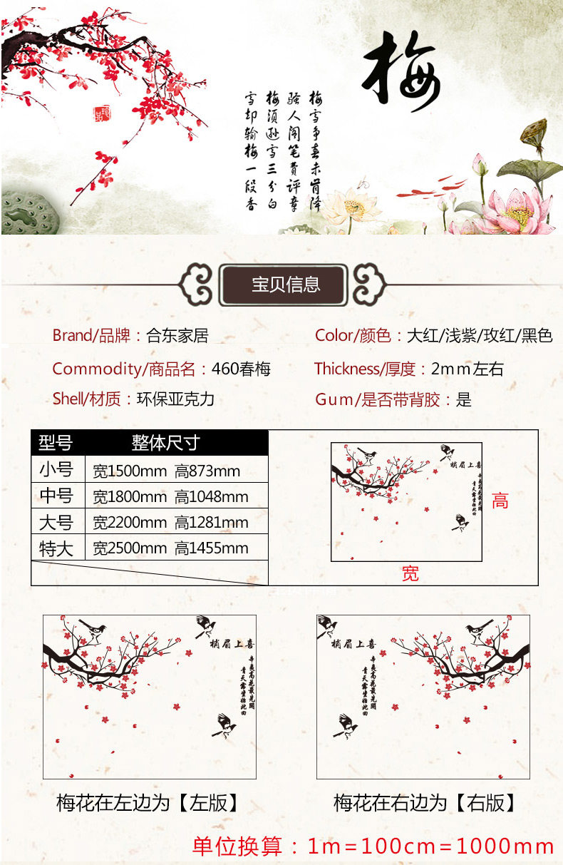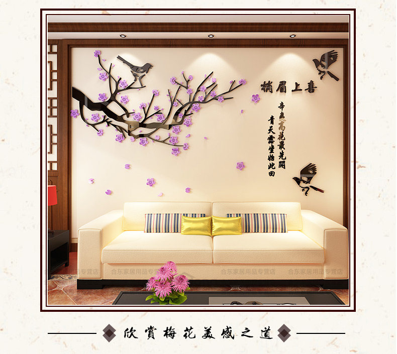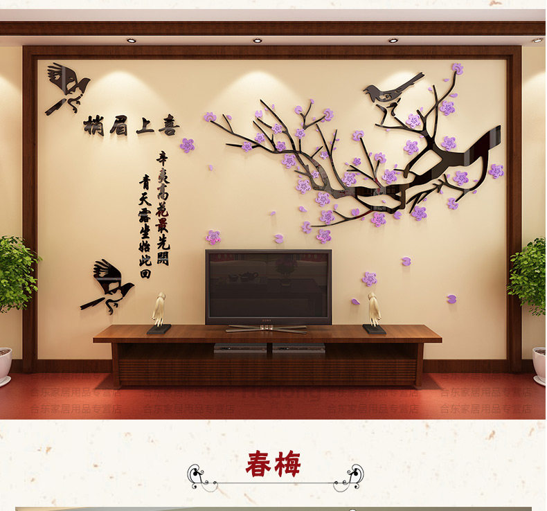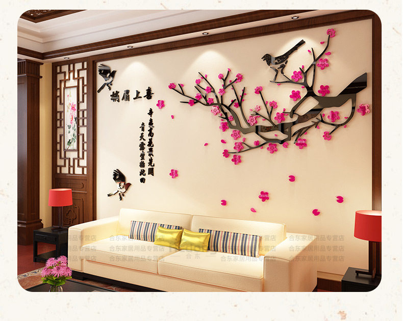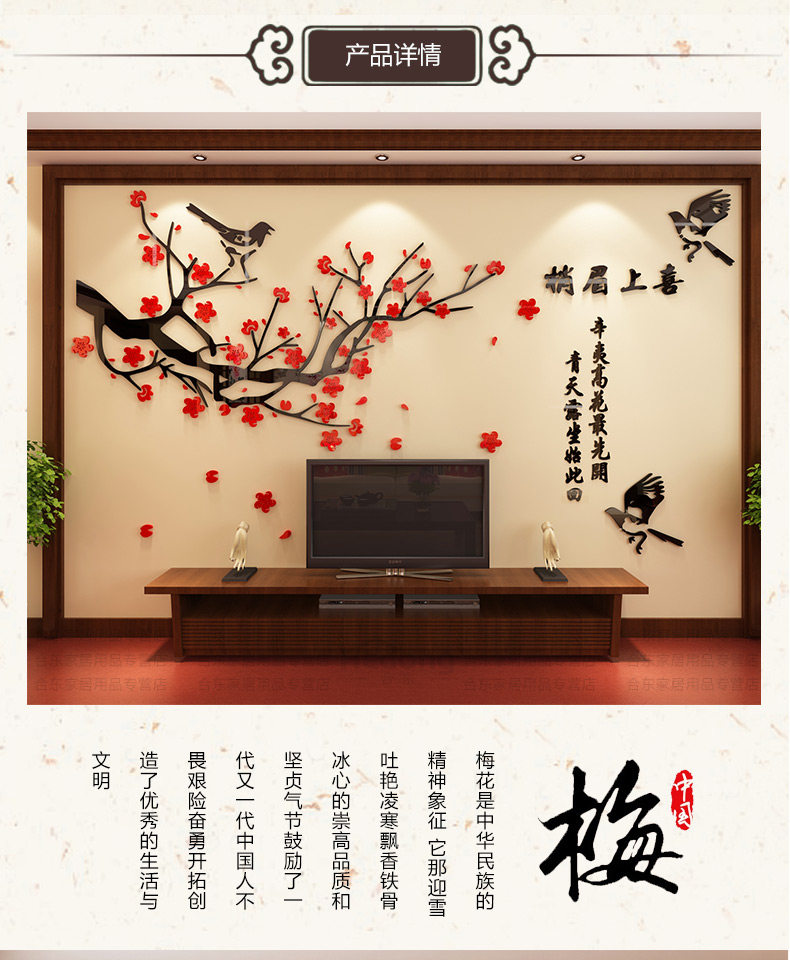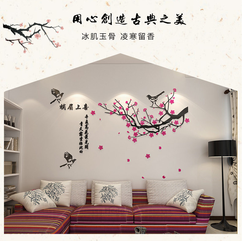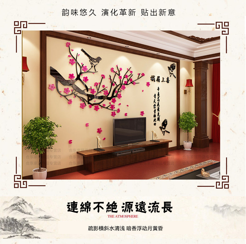 喜上眉梢3d立体墙贴画客厅沙发电视中式背景墙贴纸中国风墙面装饰