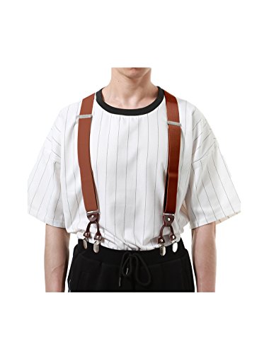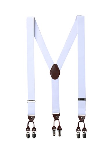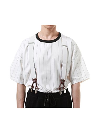 Studio : uxcell Publisher : uxcell Binding : Apparel Product Description Elastic, Y Shape Back, Adjustable Elastic Shoulder Strap, Adjustable Metal Clamps, Suspenders Suspenders ONLY, other accessories photographed not included. These heavy-duty suspenders make perfect work suspenders. The high quality construction and materials make it strong and durable to work and move around. Two durable straps come together, end at the crosspatch on the back forming a Y-shape, and continue in a single strap to attach at one point in the center of the back.?Made of durable elastic for stretchiness, flexibility and comfort, these suspenders feature three sturdy, metal clips that offer a tenacious grip that will keep your pants up while you boogie down listening to classic Stan Kenton tunes or jump, jiving, and wailing with your dame. 8 colors are available. 0