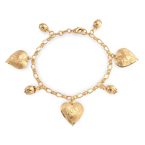 -. Feature : Message Love Heart Charm Bracelet / Made of Gold filled metal / 7.5 Inch / Measure: 7.5 inch L x 0.15 inch W / Lobster Clasp