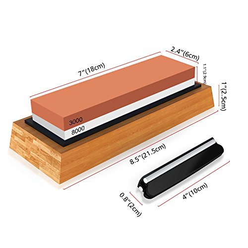 2-In-1 Knife Sharpening Stone: The whetstone offers coarse and fine side for most grinding operations. Coarse side 3000 grit can quickly sharpen dull or damaged knives and make edge very sharp; Fine side 8000 grit is able to hone and polish knife edge, and ideal for light touch-ups to an already sharp.