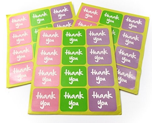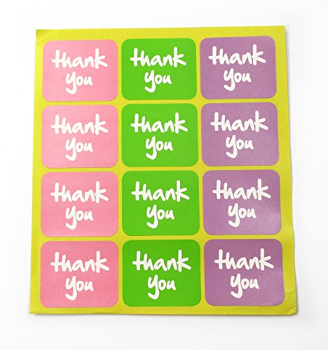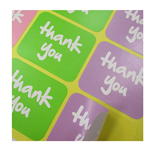 ALL in ONE 120pcs Square Pink Green Purple Thank You Adhesive Label Sticker for Packaging Seal Craft Tag Toppers (Square Color "Thank You")