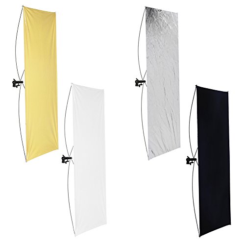 The Neewer Reflector Panel is a light shaping tool consisting of 4 aluminum rods and a geared bracket that hold its 28x43 inches/70x110 centimeters fabric without a frame.