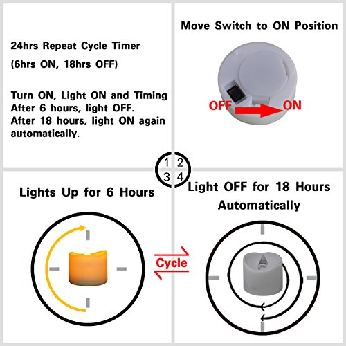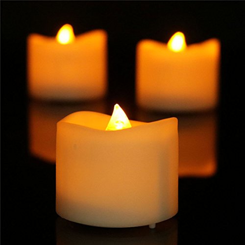 Studio : Collect Beauty Publisher : Collect Beauty Product Description Package includes 24 X Candle (Battery Included) Color The candle basic color: white The flame color: switch on: yellow-flickering, switch off: transparent The flicker subtly enough to be authentic Size: Dia*Height:1.42 inch X 1.42 inch /36 mm X 36 mm (contain the "flame" height) Perfect standard size LED tea light candle fit into any candle holder, votive, mason jars, luminary bags and glass cups Battery Type Button Cell, model number : CR-2032 3V Lithium Cell Battery Battery life 180 hours-200 hours On-off Mode A sliding switch on the bottom Battery Changing Position Replaced easily via the tab on the bottom Usage Occasion You can use the LED tea light candle both indoors or outdoors, the soft glow of the candle is the most relaxing environmental factors , it is prefect compliments to the table decorations for wedding and decorate for Christmas or outdoor party around your house. Those candles are absolutely adorable! you can set those candles up in the bathroom and at the table in your room,they will create enough light to set that romantic tone. It also suitable for making a proposal, anniversaries, restaurants and DIY projects and so on Attention 1 Please avoid soaking it in the water 2 Please don't let the baby and pet touch the button cell to avoid accidental swallowing it 0
