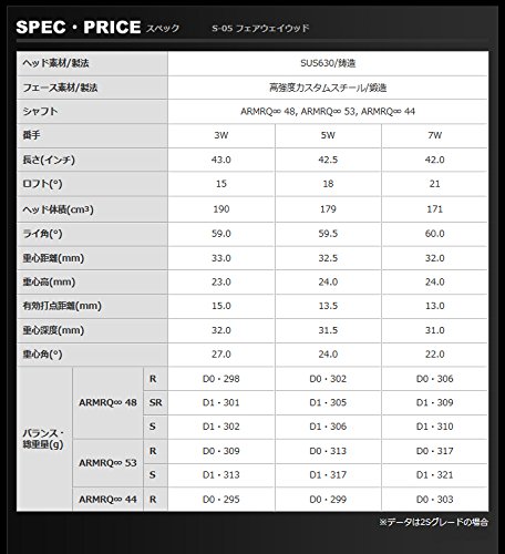 원본상품명: 本間ゴルフ フェアウェイウッド BERES ベレス S-05 フェアウェイウッド 5W(18度) 2Sグレ?ド ARMRQ∞ 48シャフト フレックス:S S-05S18 右 ロフト角:18度 番手: