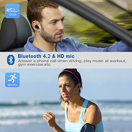 Bluetooth V4.2 Earbud Headphone Wireless Waterproof Sweatproof Noise Cancelling Sport Mini Comfortable Earphone with Mic Fit for iPhone and Android Devices Driving Running Cycling(1 Pc)