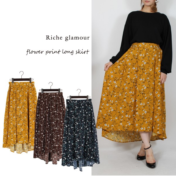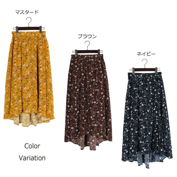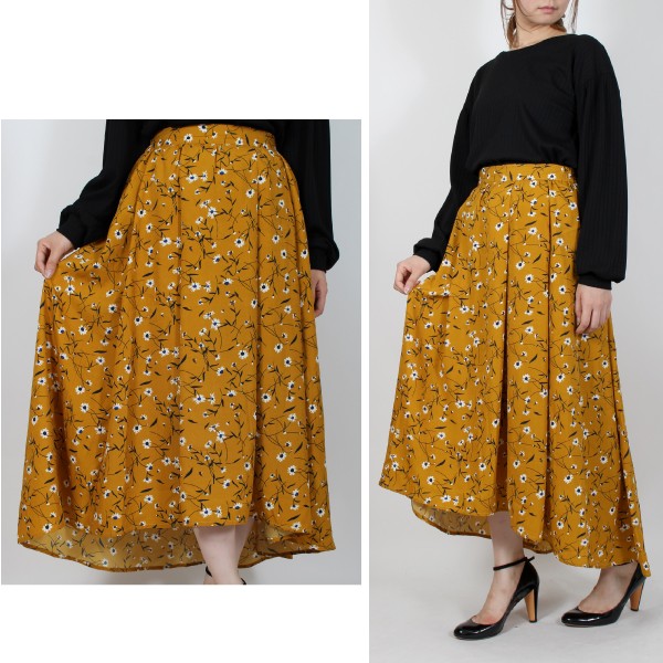 ポプリン花柄プリントのアシメトリー ロングスカート☆