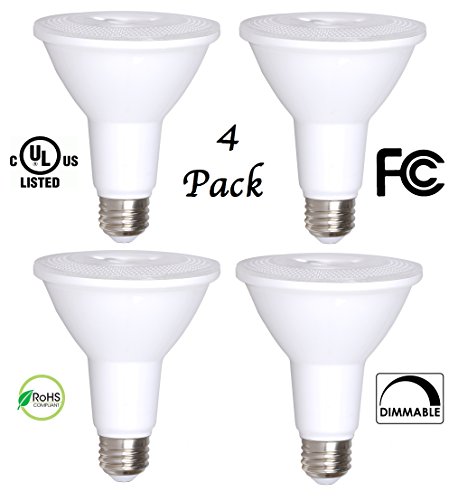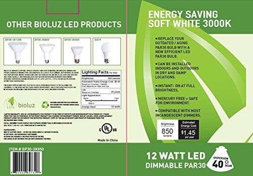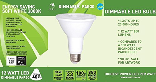 4 Pack Bioluz LED PAR30 LED Bulb, 12w Dimmable Flood Light Bulb, 100w Halogen Bulb Equivalent, 850 Lumen 3000K Indoor / Outdoor UL Listed