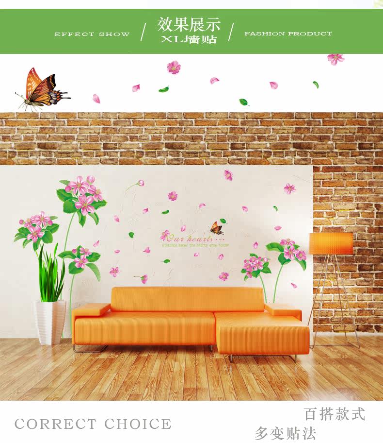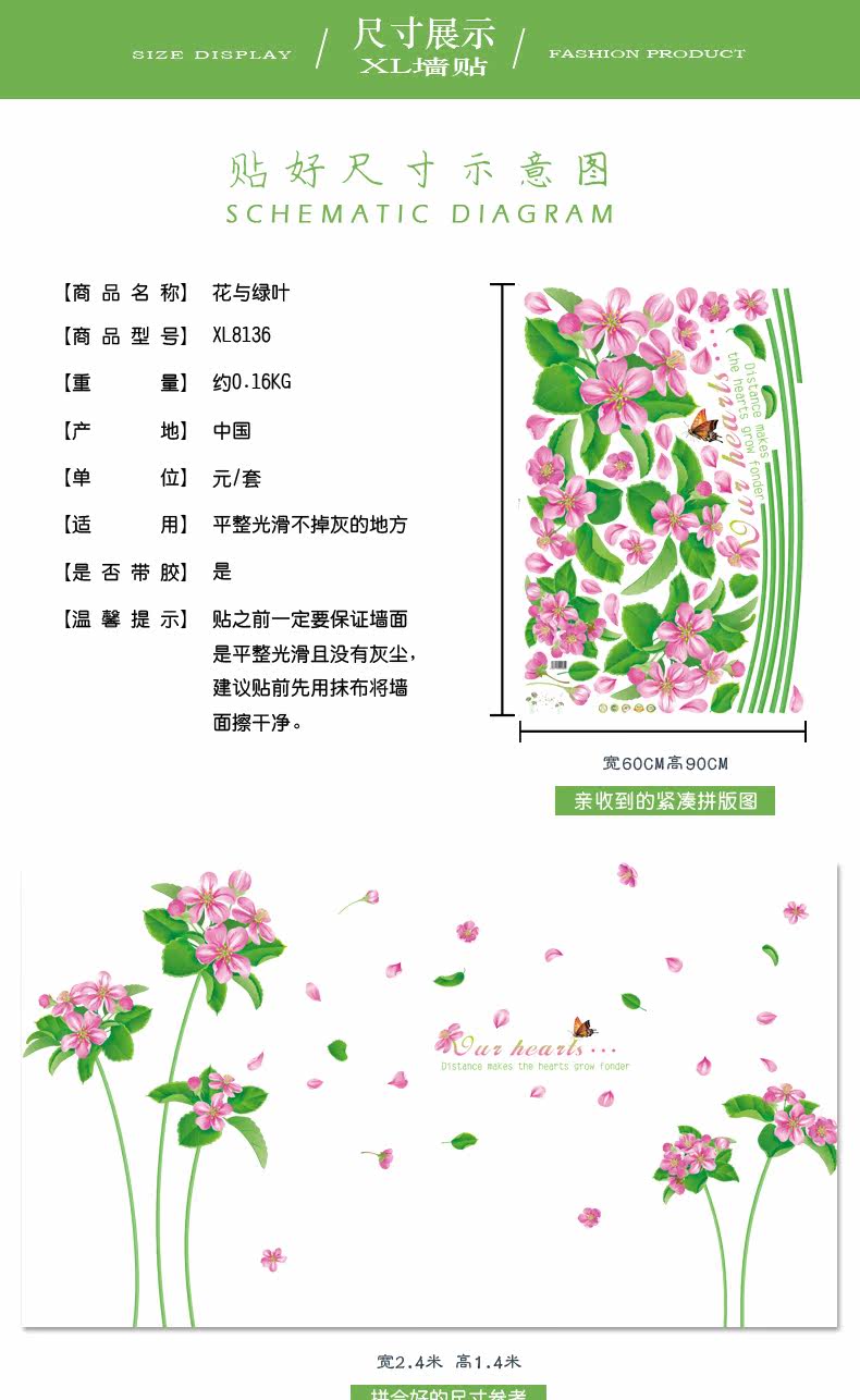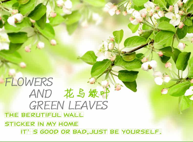 可移除墙贴纸贴画客厅沙电视背景墙壁装饰卧室床贴花绿叶墙纸自粘