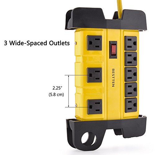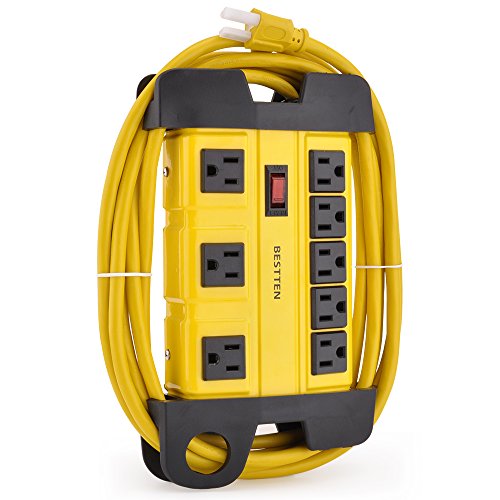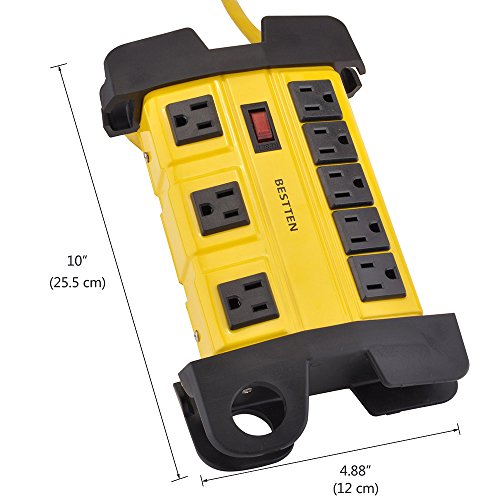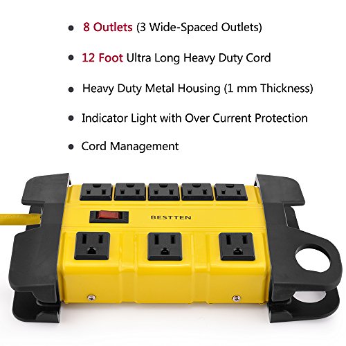 Bestten 8 Outlet Metal Power Strip, Heavy Duty Design, 12-Foot Ultra Long Cord, ETL Listed