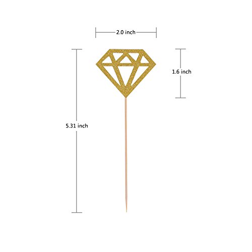 Topper size: the diamond is 5.0 cm/ 2.0 inch in width and 4.1 cm/ 1.6 inch in length; The total length is 13.5 cm/ 5.31 inch (including the wooden stick)