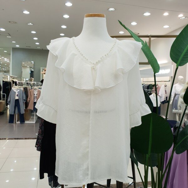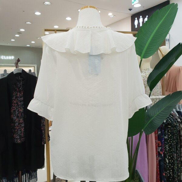 면과 폴리에스테르 혼방이라서 구김이 덜하고 통풍이 잘돼서 시원합니다~ 목라인따라 자수포인트와 프릴이 사랑스러운 블라우스입니다~