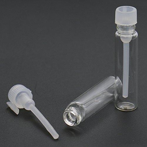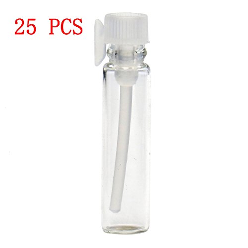 Rugjut 25Pcs Mini Clear Glass Perfume Sample Vials Empty Refillable Cosmetic Liquid Aromatherapy Essential Oils Fragrance Bottles Container Jars 1ML