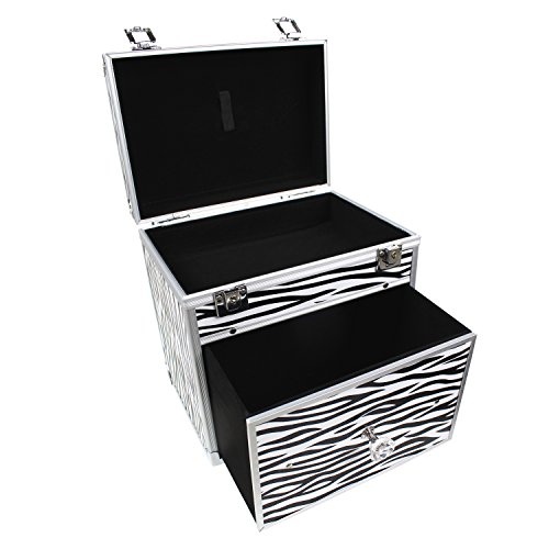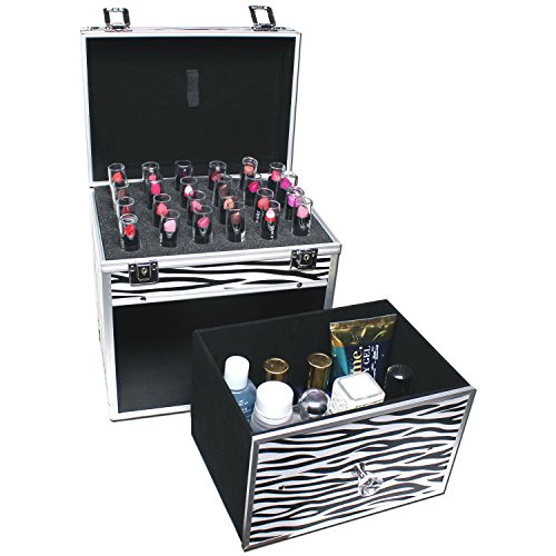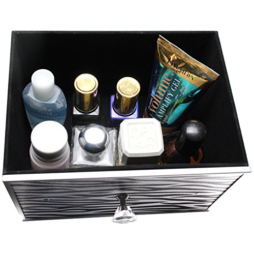 - VERSATILE & STYLISH : The case can hold nail polishes, powders, eye shadows, foundation, lipsticks, liners, nail varnishes, skincare products, brushes, accessories and everything for cosmetic. It also allows you to present cosmetics in a stylish, economical way. Zebra pattern makes your case more eye-catching