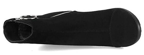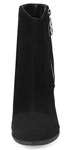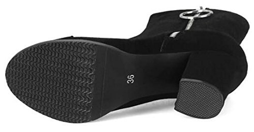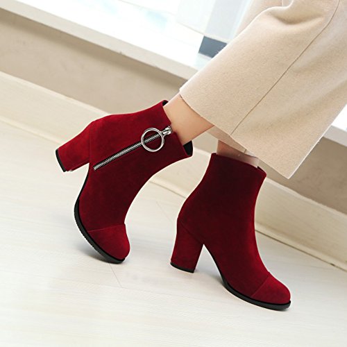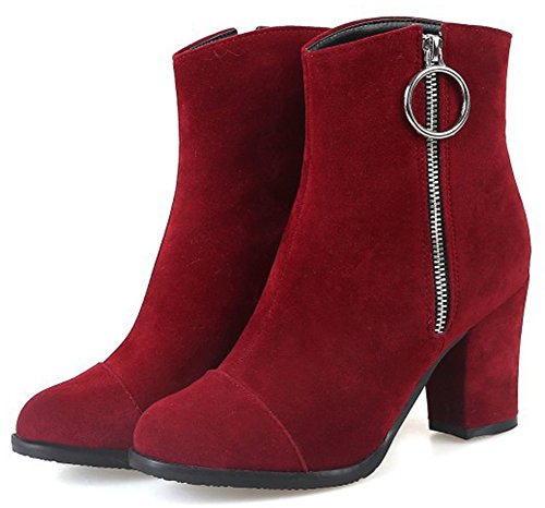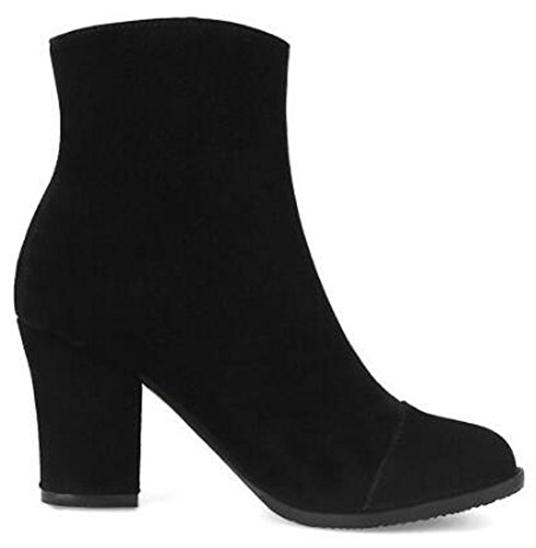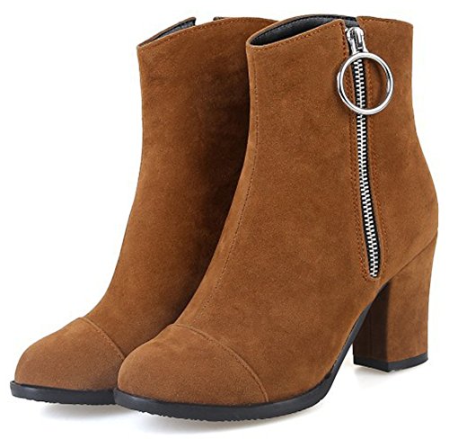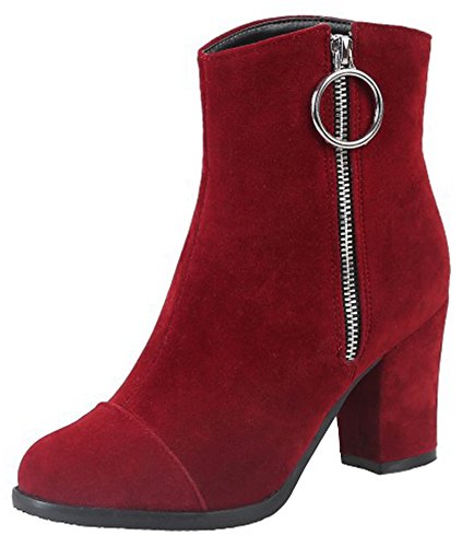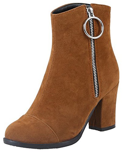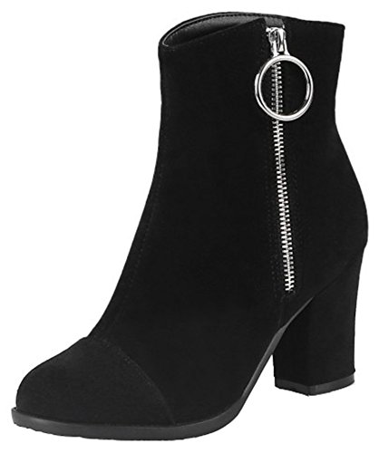 (Mofri)/Women's/Boots/DIRECT FROM USA/Mofri Women's Fashion Metal Circle Chunky High Heel Short Boots Round Toe Side Zipper Faux Sued...