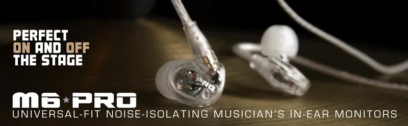 · A gold-plated ¼" (6.3mm) stereo adapter is included for compatibility with a wide range of gear while the attached shirt clips and cable cinch keep the cord out of your way for greater freedom of movement. The premium carrying case has room for the spare cable, eartips, and all other accessories, letting the M6 PRO join you on the road.