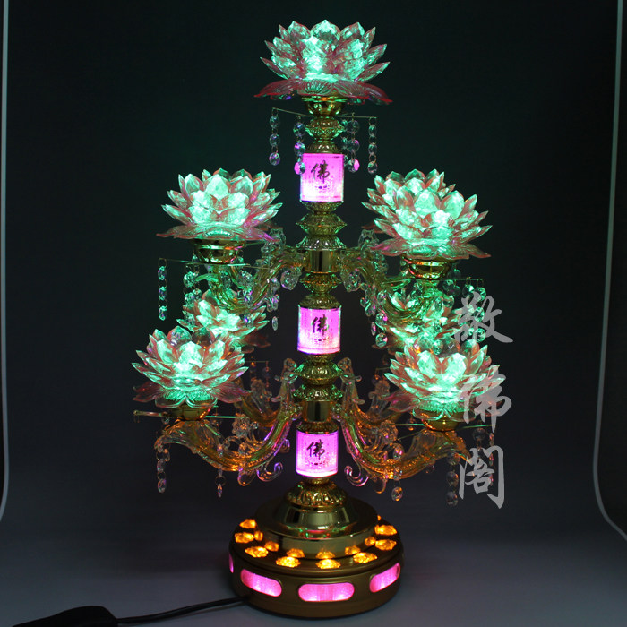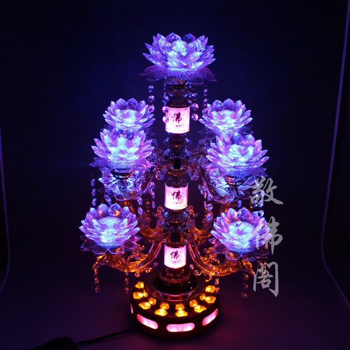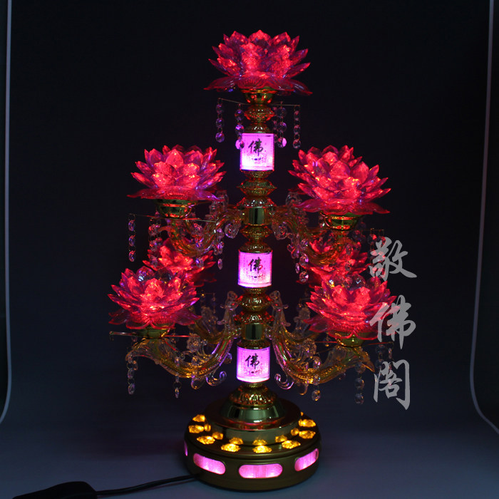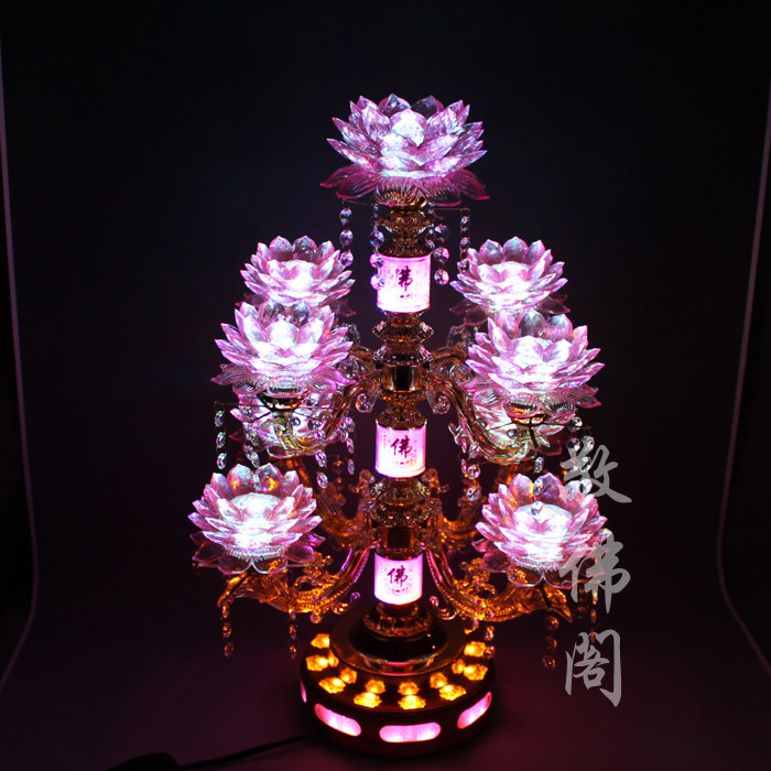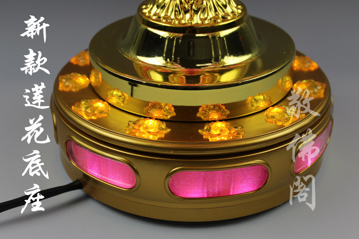 Description: the Lotus flower lights turn with Buddhist music, colorful lights cycle transformation is particularly extraordinary in the temple, can also choose citrine yellow, Red Crystal Red, Crystal white colorful light.