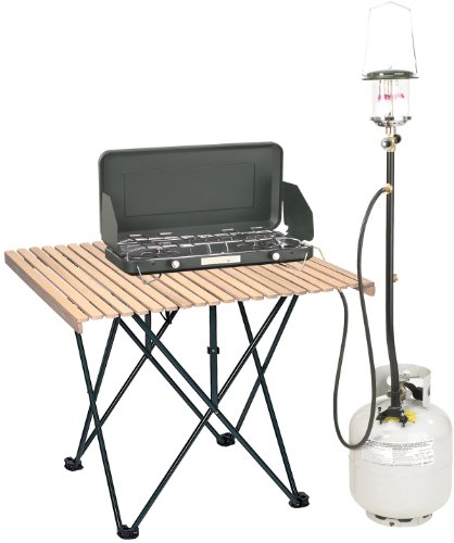 -. Feature : Simple, versatile device lets you operate three propane devices from one bulk propane cylinder / Works with lanterns, stoves, heaters, and other propane appliances / Three outlets, each with its own auto shut-off valve / Adjustable base ensures stability on uneven terrain / 30-inch device weighs just two pounds, and packs easily