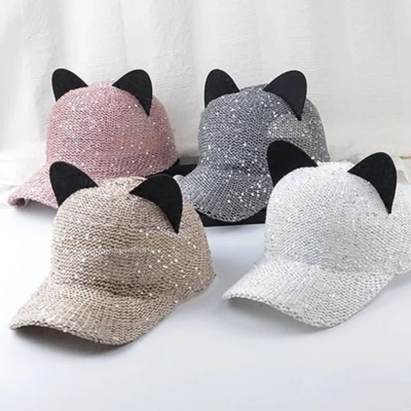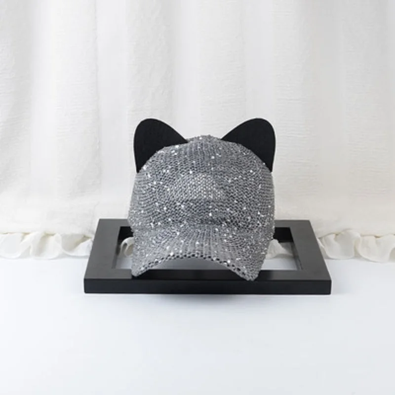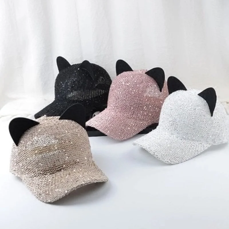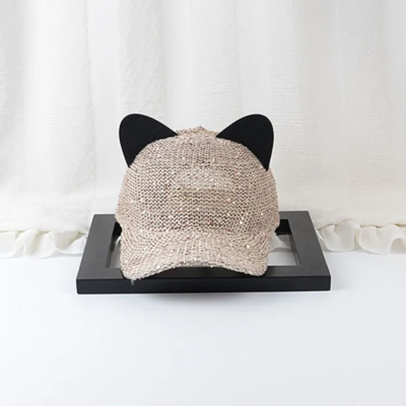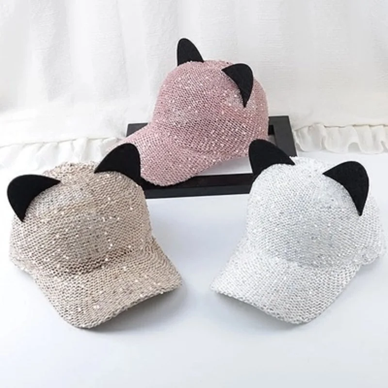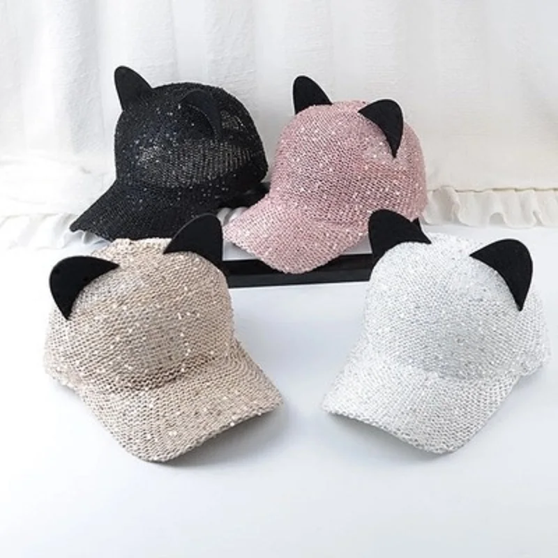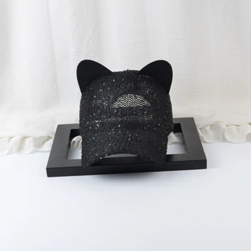 style1:Women Sequins Mesh Baseball Cap With Ears