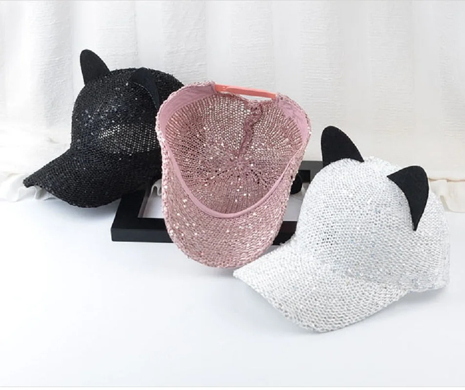 Features:Sequins Bling Mesh Baseball Cap With Cute Ears