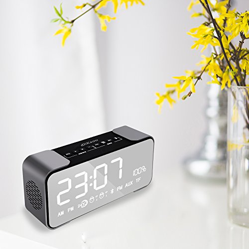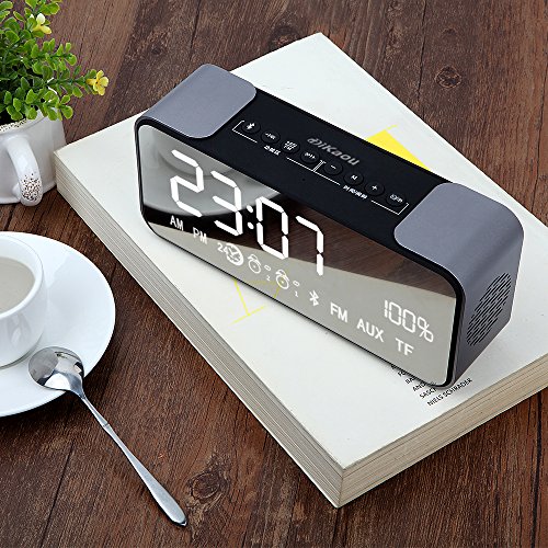 Multi-function It is can be as a Bluetooth speaker(8W dual-speaker), alarm clock(12hours/military time format), and as a nice mirror. You can enjoy the music life anywhere with this device