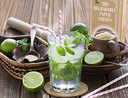 -. Feature : PAPER STRAWS THAT BIODEGRADE IN DAYS RATHER THAN CENTURIES. Don't use plastic straws, they are destroying the world's oceans, and littering your back yard. These disposable paper drinking straws will last for up to hours in use, and if you think about how long you actually need to use a straw, it is at most, two drinks. This will last long enough, and then you can feel great about throwing these out or even composting them because they will biodegrade in 45 days. / 100% FDA APPROVED FOOD GRADE MATERIALS AND INKS. Not only are these straws safe for human use, they are safe for human consumption. All of our materials used are safe, non harmful, and made with all natural materials. Feel great about having your children use them without any concern for their health. These fun straws will last as long as plastic straws, but are much safer for you and your loved ones. / BEAUTIFUL PAPER STRAWS. These beautiful designs are perfect for baby showers, teen parties, bachelorette parties, birthday parties, anything your heart desires. There are 3 designs in each box, pink striped straws, polka dots and herringbone patterns. Perfect for entertaining, home use, or for that special occasion. / 100% LIFETIME SATISFACTION GUARANTEE; You don't like it, we will give you your money back. Full Refund, NO Questions Asked. Order your pinked striped straws now, and why not make a special gift for a friend that you know would like these straws. You will love these straws, and they will surP.R.Ise you on how long they last. Do not use plastic, use these paper biodegradable straws and make our planet and your family safer. / MADE IN THE USA, DONATIONS TO THE OCEAN CLEANUP PROJECT. Made in the USA with FDA approved and environmentally friendly materials. Using a patent pending eco-flex design, you will be able to use these like twisty straws and bend them to your needs. Our mission is to help eliminate the needless consumption of disposable plastic products, while also contributing to the clean up of our oceans. Did you know the Pacific Island Garbage Patch is now twice the size of Texas? That's a lot of plastic floating in our oceans, our children's oceans. We give a portion of your purchase to the Ocean Cleanup Project, the boldest oceanic cleanup project in history. By buying this product you're stopping the needless purchase and use of plastic straws, and you are helping a massive effort to clean up the world's oceans.