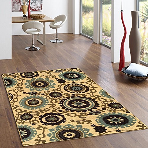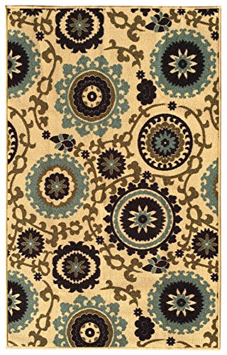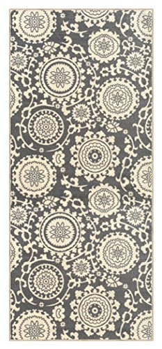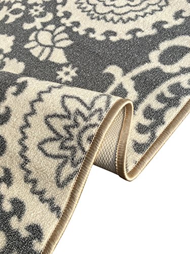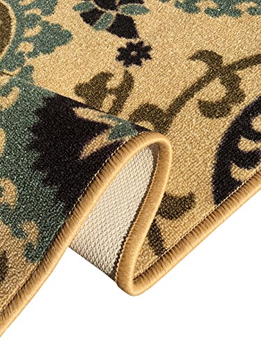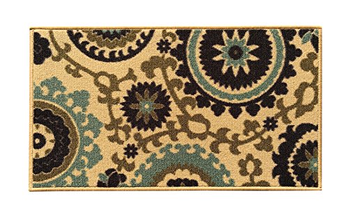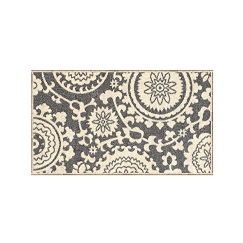 -. Brand : Kapaqua -. Feature : Comes in many different size options! / Machine woven loop texture with 100% nylon pile for long lasting quality with vivid colors that won't fade away / Efficient LOW PILE (1/4") which does not add bulk to your floor and great fit under most of the doors / EASY CARE: Vacuum regularly. Gently wipe away any soil or spill with a wet washing cloth and a little detergent if needed. / With its stain, mold, mildew, bacteria, soil resistant polypropylene material; it is also an ideal addition to homes with kids and pets -. Label : Kapaqua -. Manufacturer : Kapaqua -. MPN : RAN2036 -. PackageQuantity : 1 -. PartNumber : RAN2036 -. ProductGroup : Furniture -. ProductTypeName : HOME_FURNITURE_AND_DECOR -. Publisher : Kapaqua -. Studio : Kapaqua -. Title : Rubber Backed Non-Slip Floral Swirl Medallion Ivory Blue Beige Multicolor Rugs and Runners - Rana Collection Kitchen Dining Living Hallway Bathroom Pet Entry Rugs