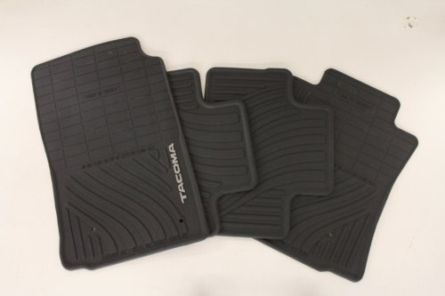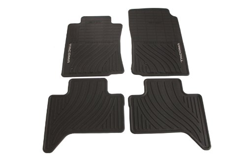 -. Binding : Automotive -. Brand : Toyota -. Color : Black -. Feature : Fits: 2008-2011 Toyota Tacoma Double Cab / Helps protect vehicle's factory carpet against mud, embedded sand, stains and soils / Replaces standard carpet floor mats / Ribbed channel design / Easy to clean - can be wiped off -. Label : Toyota -. Manufacturer : Toyota -. ManufacturerPartsWarrantyDescription : Parts -. Model : PT908-35002-02 -. MPN : PT908-35002-02 -. PackageQuantity : 1 -. PartNumber : PT908-35002-02 -. ProductGroup : Automotive Parts and Accessories -. ProductTypeName : AUTO_ACCESSORY -. Publisher : Toyota -. ReleaseDate : 2013-01-23 -. Studio : Toyota -. Title : Genuine Toyota Accessories PT908-35002-02 Front and Rear All-Weather Floor Mat - (Black), Set of 4