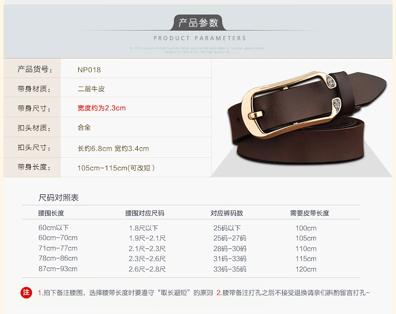 Belt Color:Black / Coffee / Brown/ Red / Red Brown/ White/Rose