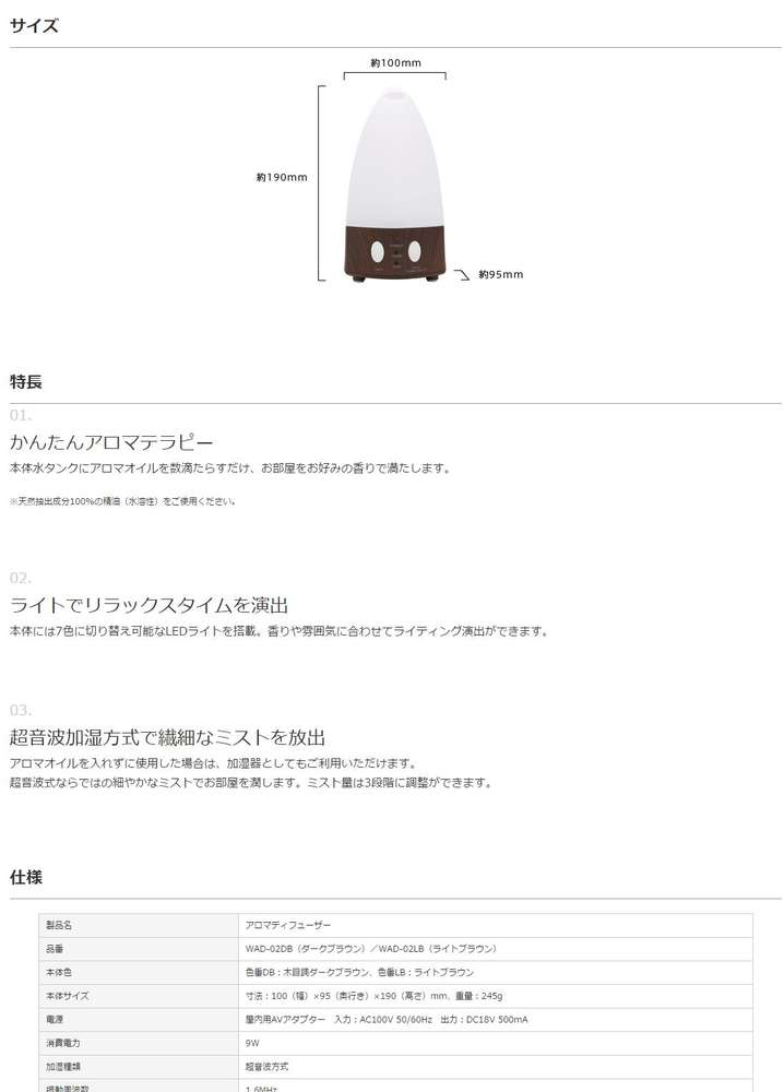アロマオイルを入れずに使用した場合は、加湿器としてもご利用いただけます。