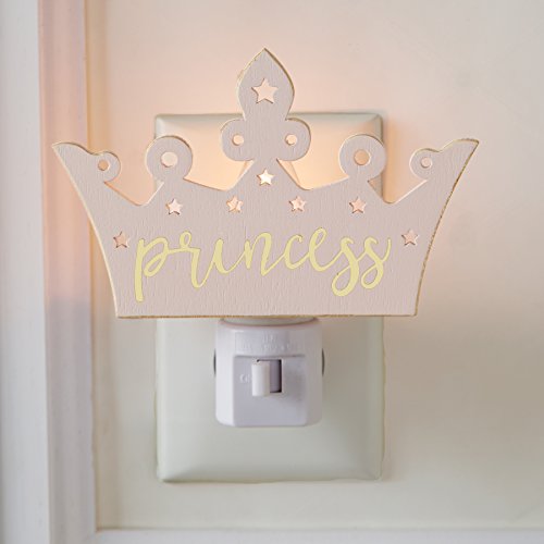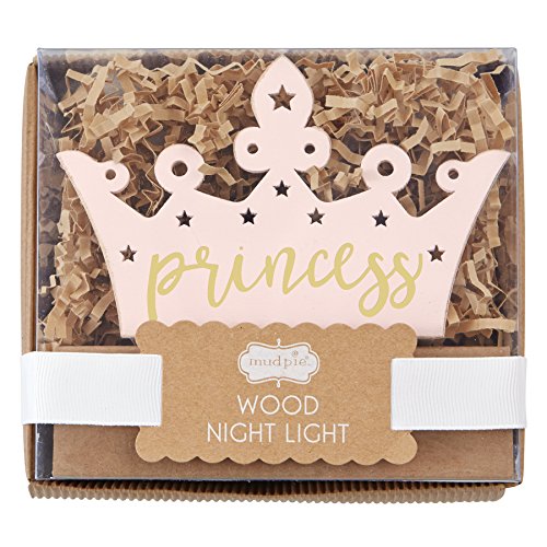 Mud Pie Wood Princess Crown Nursery Night Light, Pink