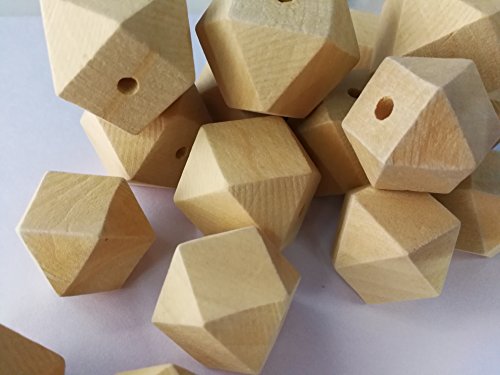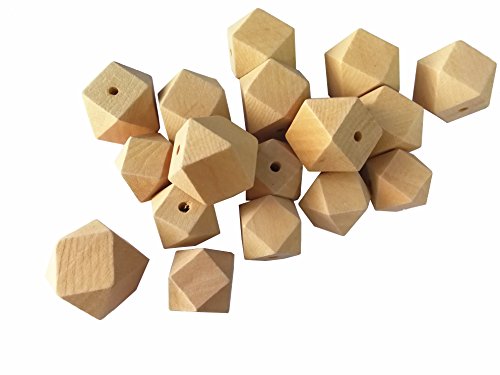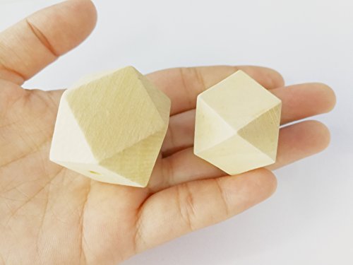 Bettewoo Pack of 30pc 25mm 30mm Unpainted Natural Geometric Hexagon Wood Beads DIY Nursing Baby Teething Toy Favor