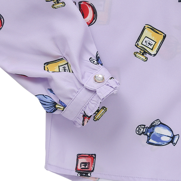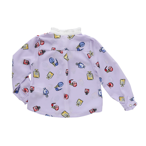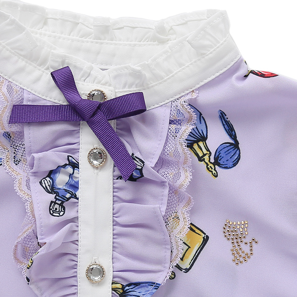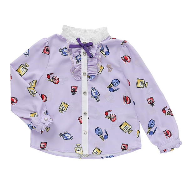 상품설명 연보라 향수나염 블라우스입니다. 컬러감이 특히나 예쁜 제품인데요. 화이트 배색과 리본장식으로 포인트를 주었습니다.