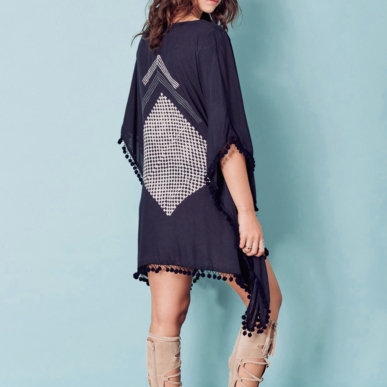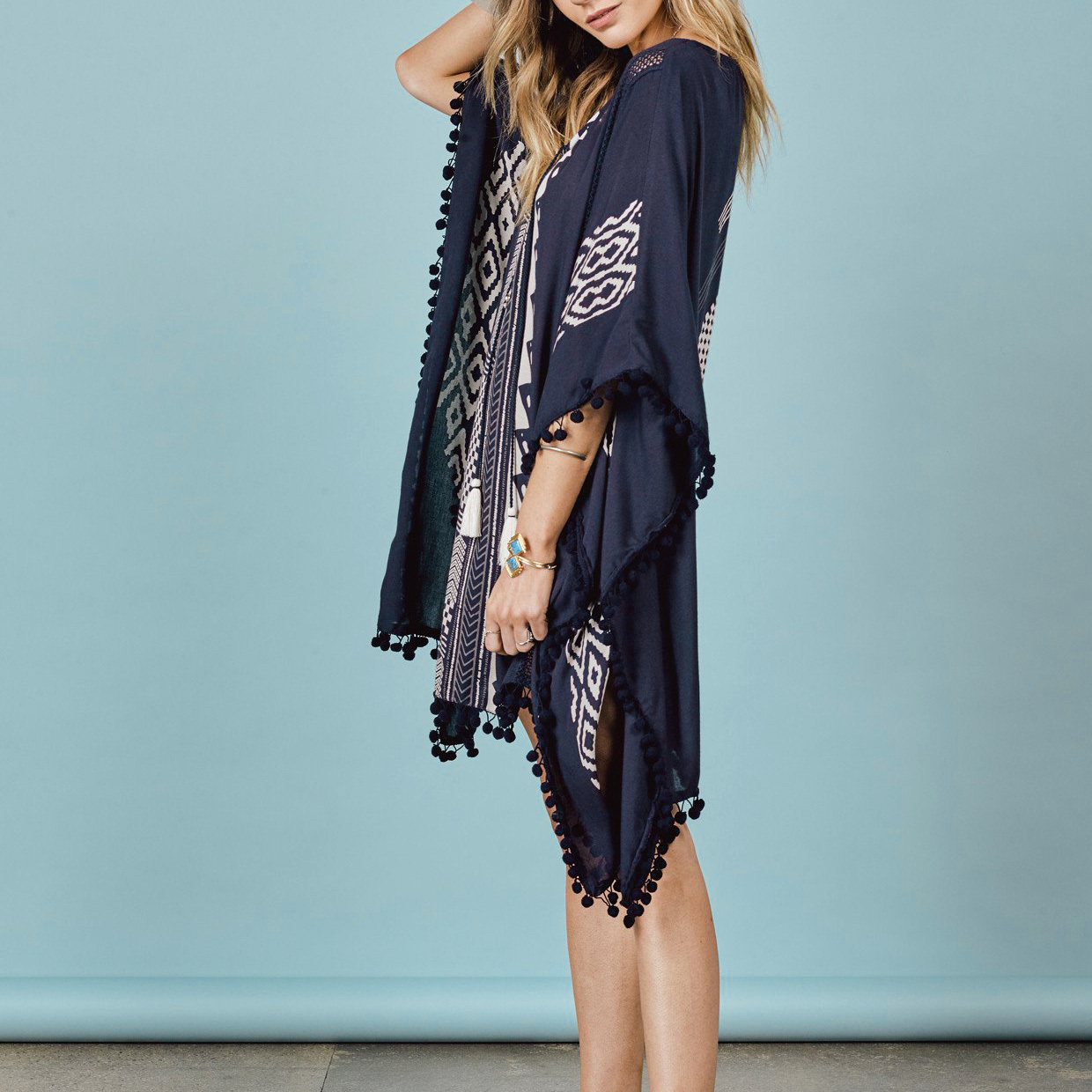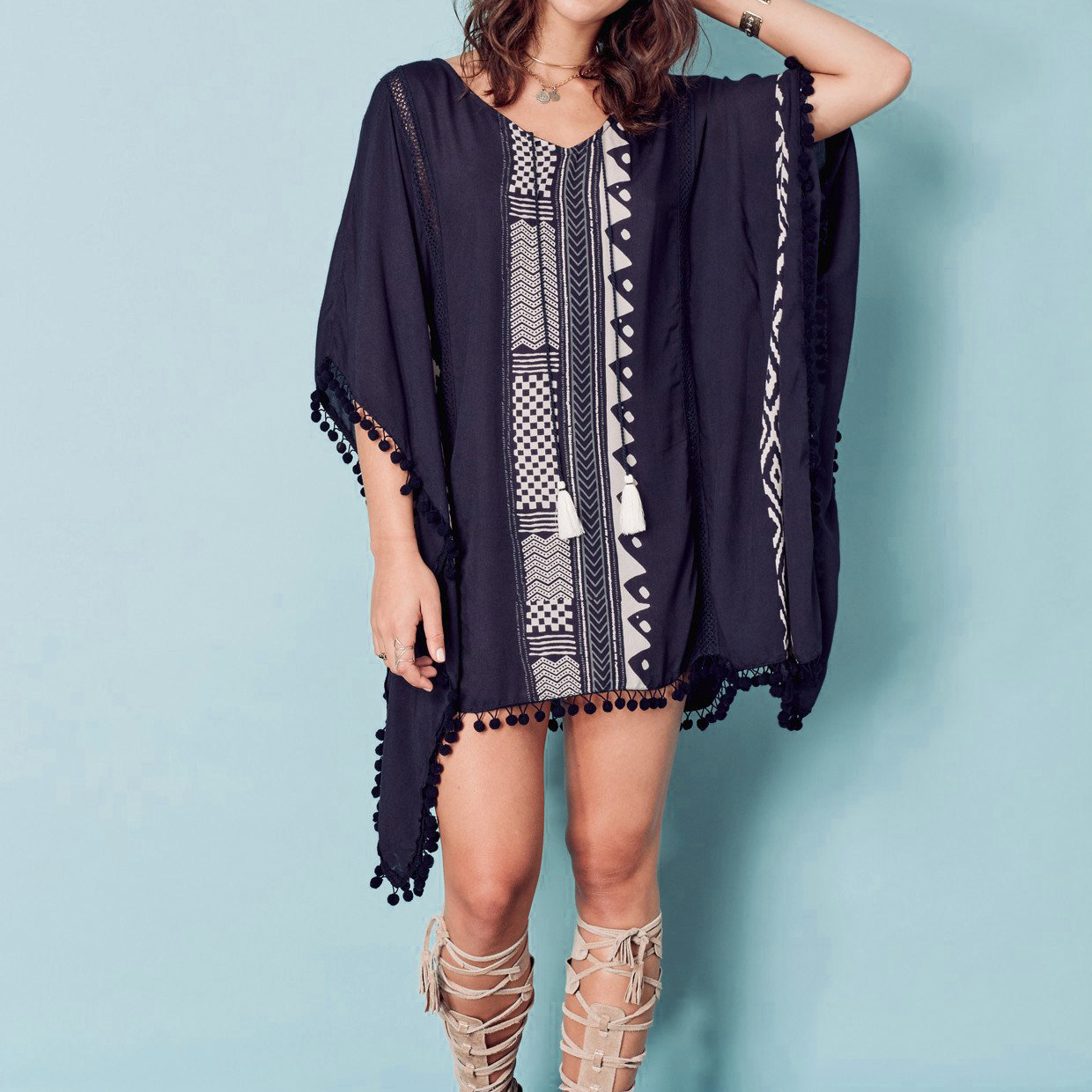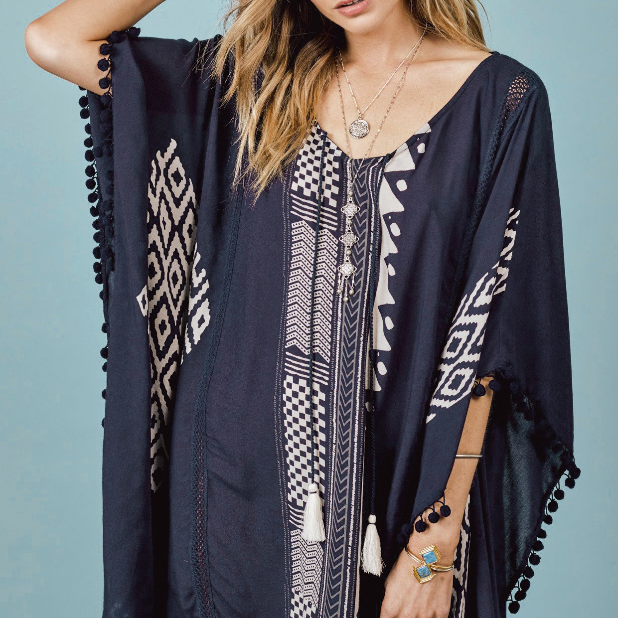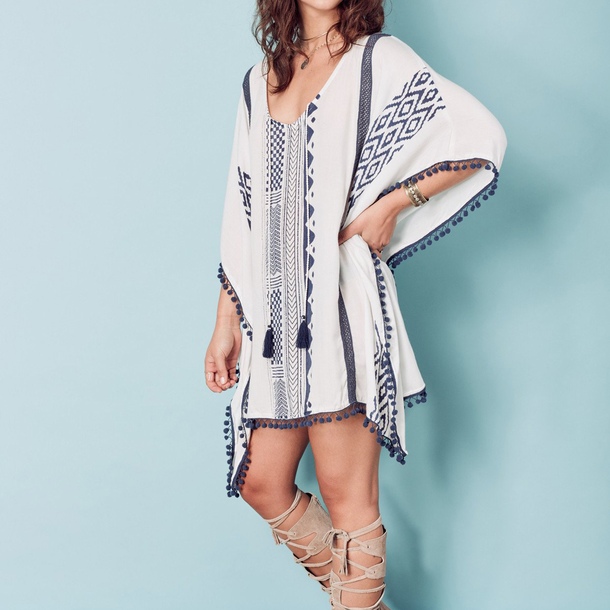 ゆったりシルエットで日焼け対策もバッチリビーチワンピース☆