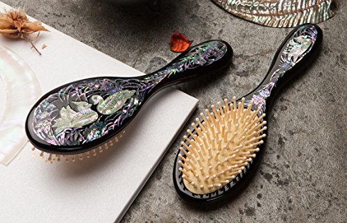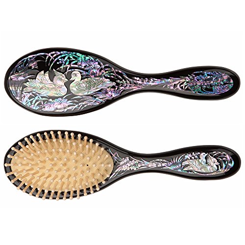 Antique Alive Mother of Pearl Inlay Art Wedding Duck Couple Luxury Oval Black Salon Styling Hair Brush Detangling Anti Static Scalp Massage Comb Wooden...