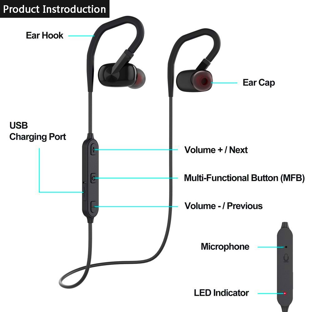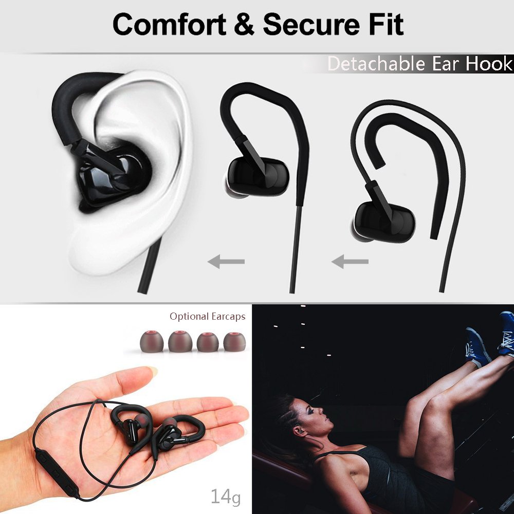 With a lightweight and compact design design, with a flexible ear hook that fits over the ears, including earpieces of (S, M, L) size, these three elements firmly hold the earphone in your ear