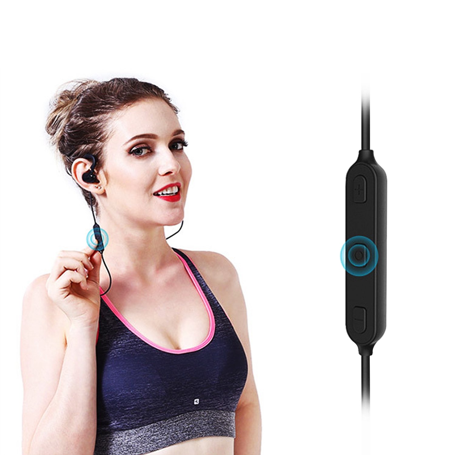The Bluetooth earphone features a remote control on the ear, making volume control, playing / stopping music, and handling phone responses convenient.