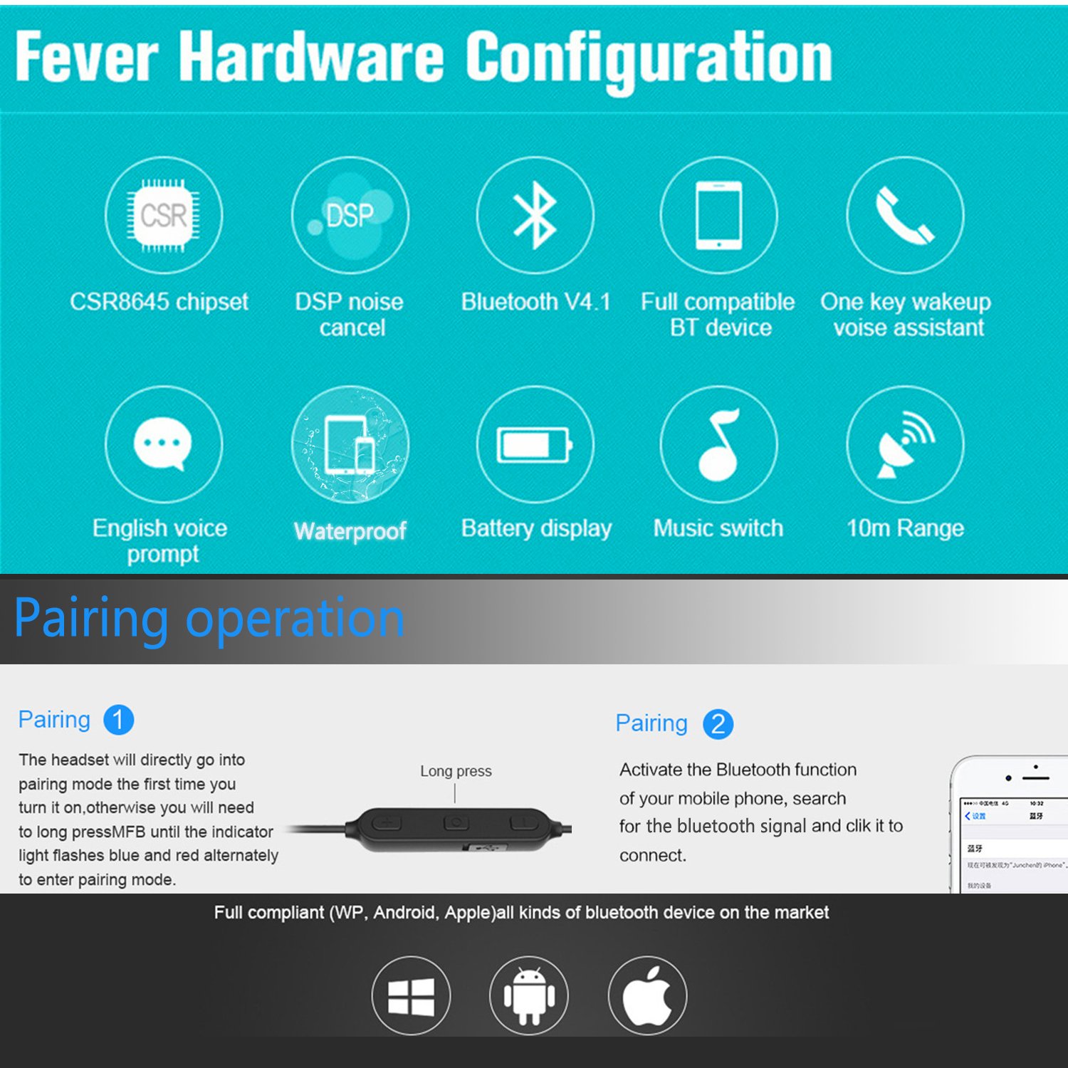 ● Bluetooth 4.1 version · It corresponds to 99% ios & Android smartphone model.