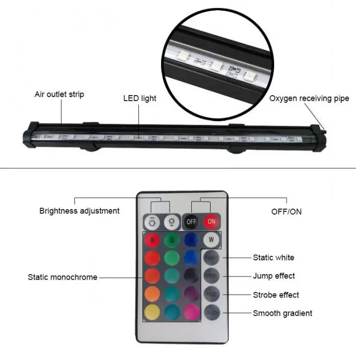 16/26/36/46/56CM LED Fish Tank Light RGB Bar Air Bubble Lamp Submersible Waterproof Aquarium Fish Aquatic Pet Lighting