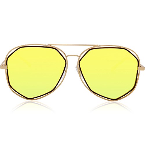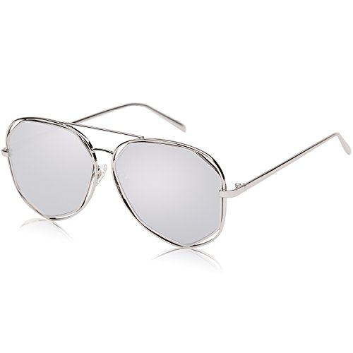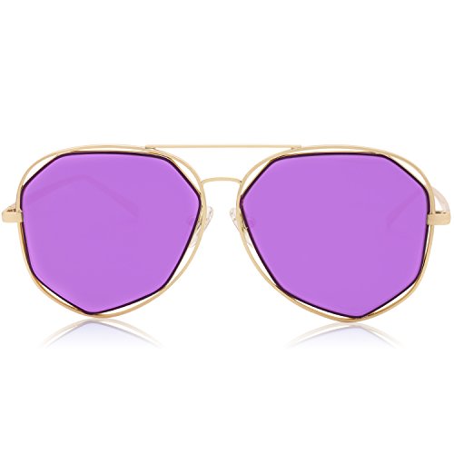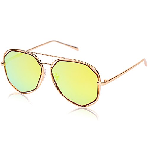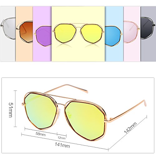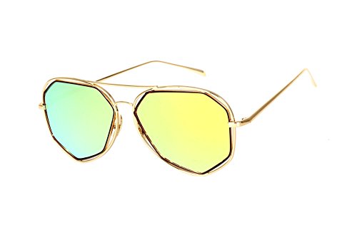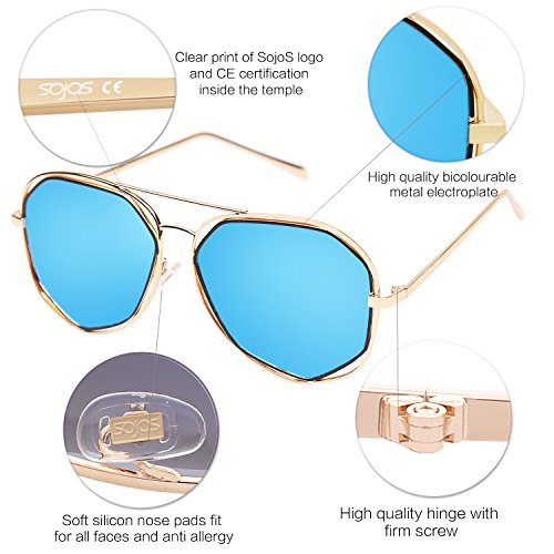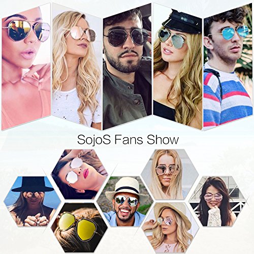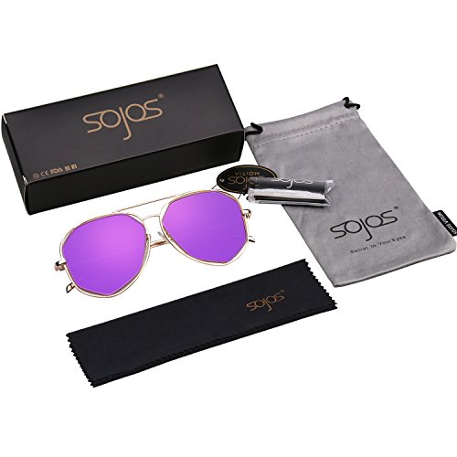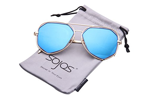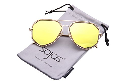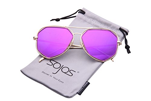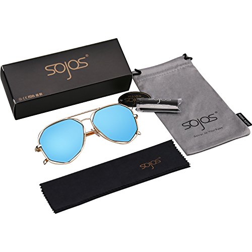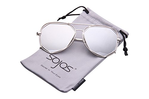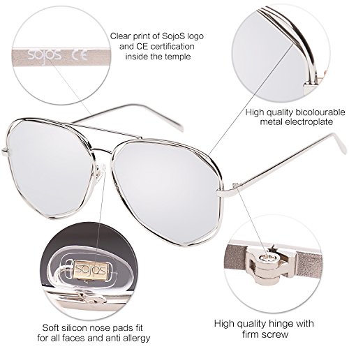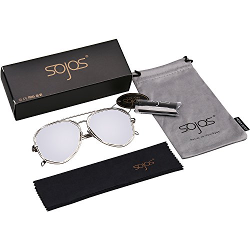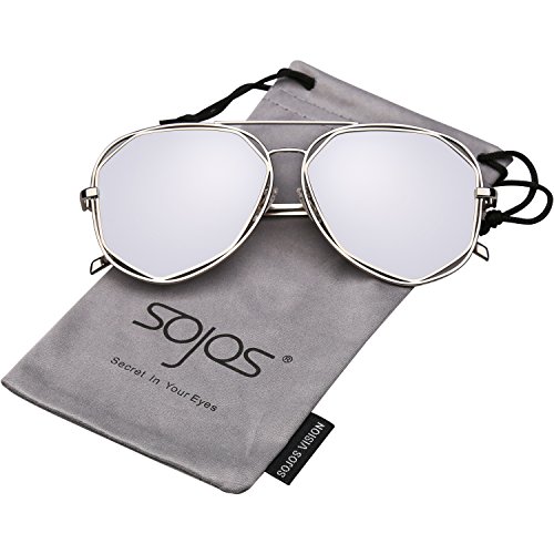 | SojoS® Fashion Metal Frame Flat Mirrored Lens Sunglasses |